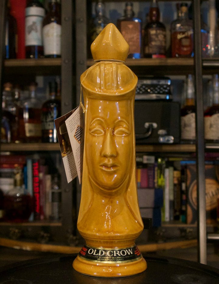 Back in the 1960s through the 80s, distilleries were having trouble selling their whiskey in bottles so they started creating unique bottlings through the use of Decanters. Old Crow, which was owned and produced by National Distillers created a full chess set of decanter bottles, complete with all pieces and the ability to send them postage to receive a carpeted chessboard as well. The whiskey inside is 86pf and age stated 10 years, but is among some of the highest rated whiskey by vintage enthusiasts that has ever been produced.
